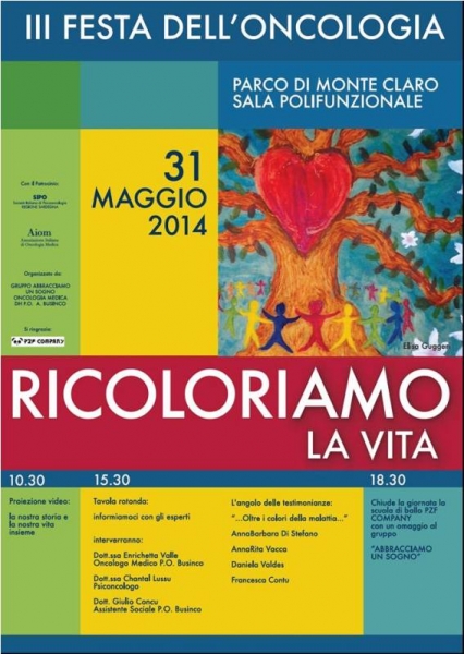 Sabato 31 maggio nel Parco di Monte Claro si celebra la 3° Festa dell'Oncologia organizzata dal Gruppo "Abbracciamo un Sogno". Durante la giornata testimonianze sulla malattie, informazione con Oncologo, Psicologo e Assistente sociale e spettacolo di danza. Appuntamento alle 10.30 con "Ricoloriamo la vita".